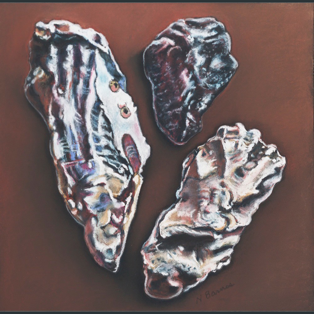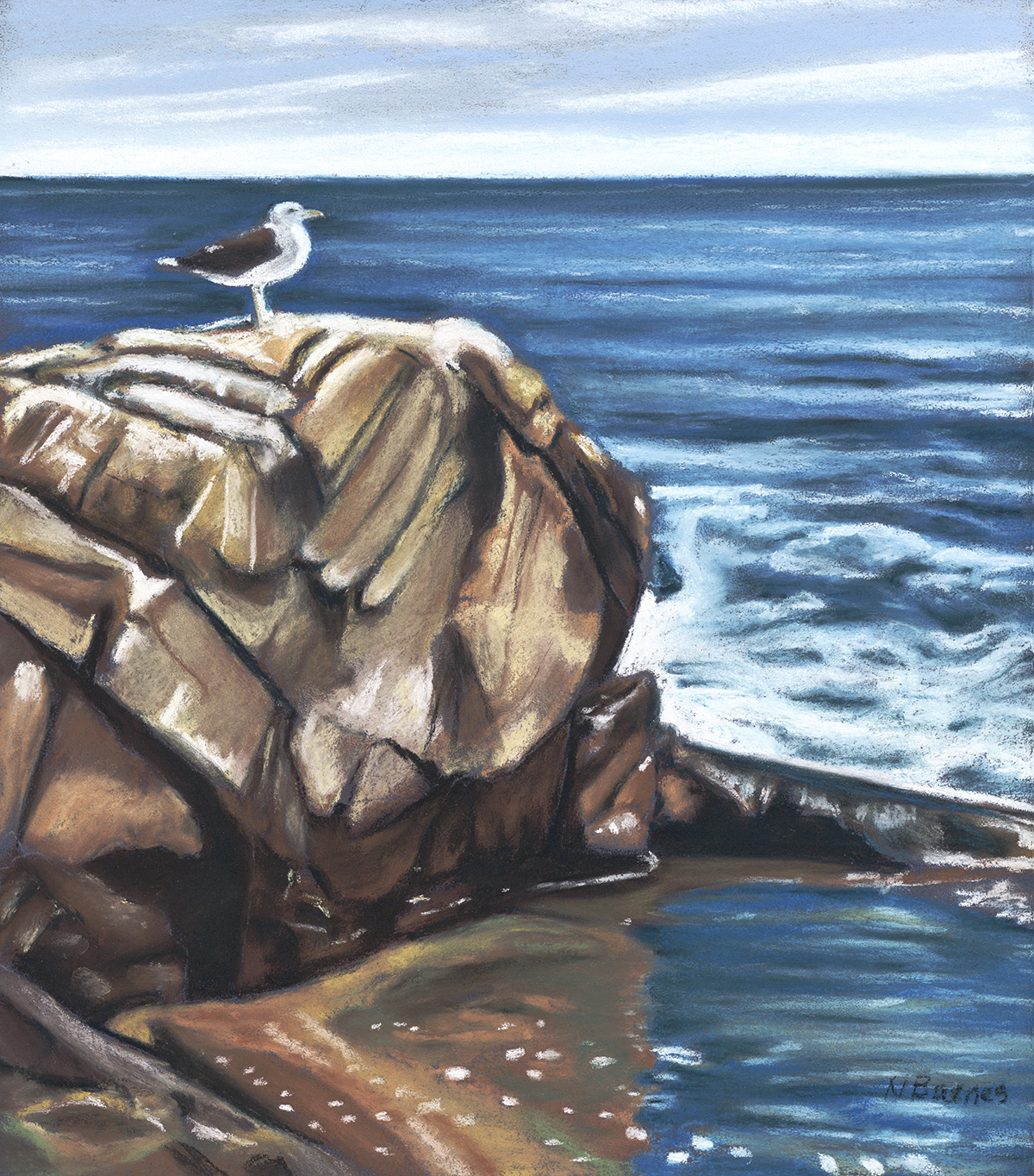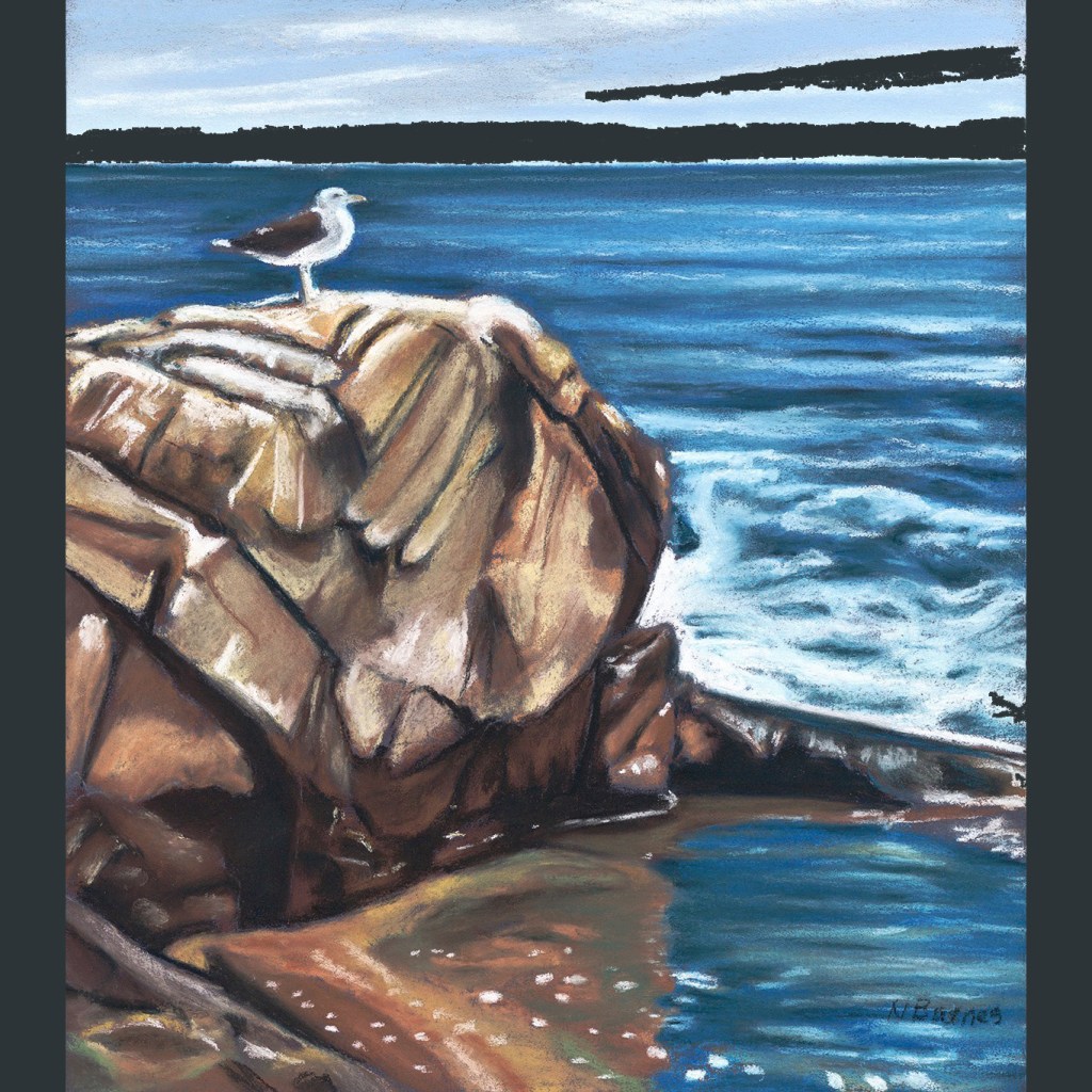 Living on Cape Cod and the Northshore of MA, her artwork concentrates on pastels of seascapes and the natural life found in and around the ocean.